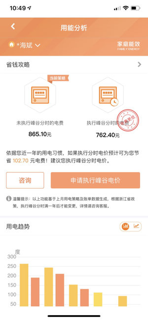 3.店铺场景为您带来基础性的服务,电费账单、用能分析、电费金融等更专业化的服务。