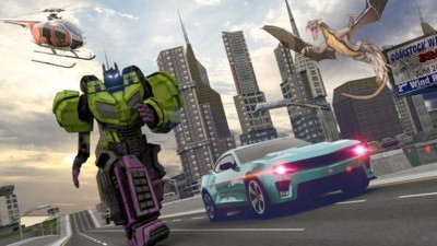 3、在游戏里控制汽车人在城市里巡逻,找到四处破坏的飞龙,击败它,获得升级汽车人的材料;