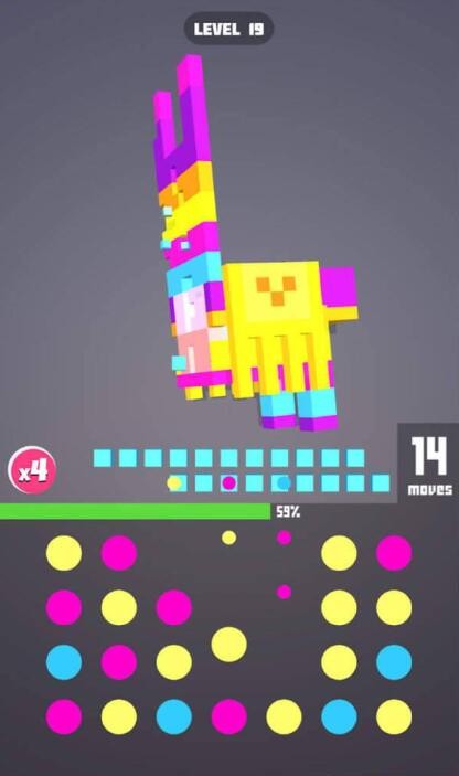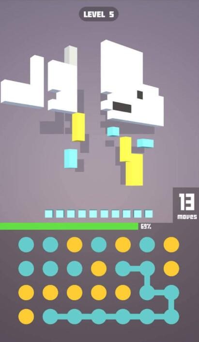 1.尝试拼凑的时候可以注意一下下方各种颜色的点,新手引导会向你介绍这些点的作用,让过关更简单;