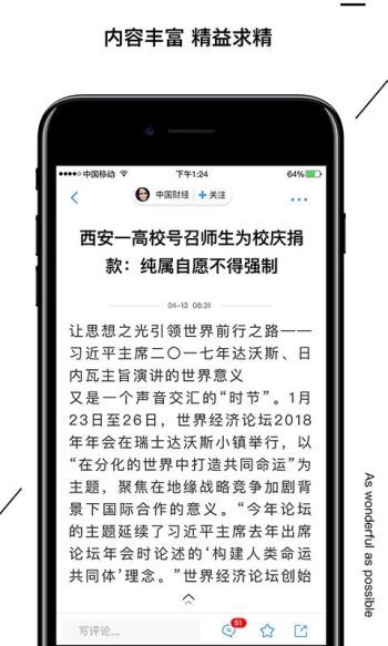 诸多优选频道栏目等着你订阅,充足满足你的阅读文章需要;大量资讯新闻资源,主题鲜明精彩纷呈,文章内容简单易懂;即时消息推送关心的新闻媒体资讯动态性,很感兴趣的不容易错过了;一键回应网民评价,轻轻松松互动沟通交流,寻找新的小伙伴。