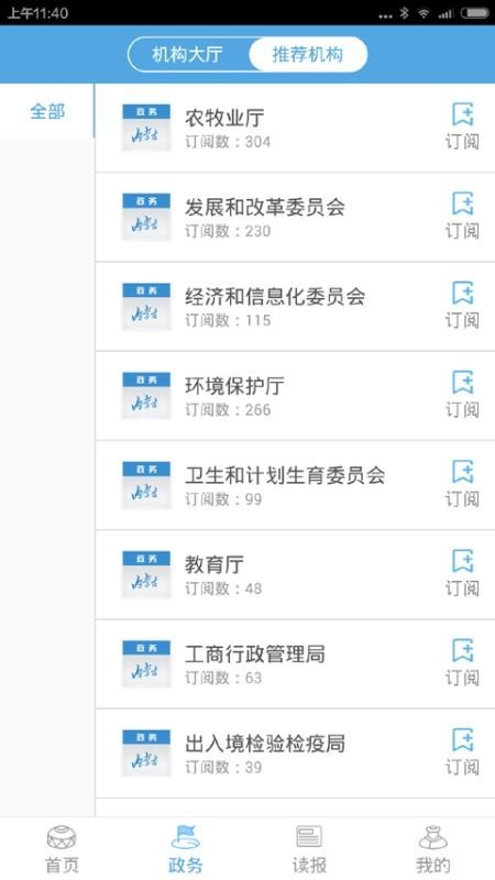 关注部门机构,想要时刻了解政务信息的话则可以自主的关注当地的各个机构部门;