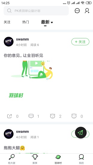 关注自己喜欢的羽毛球球星,让你能够实时了解到他的动态;