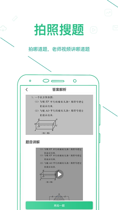 2.有拍照搜题的功能,找到类似的题目后能选择让老师串讲;