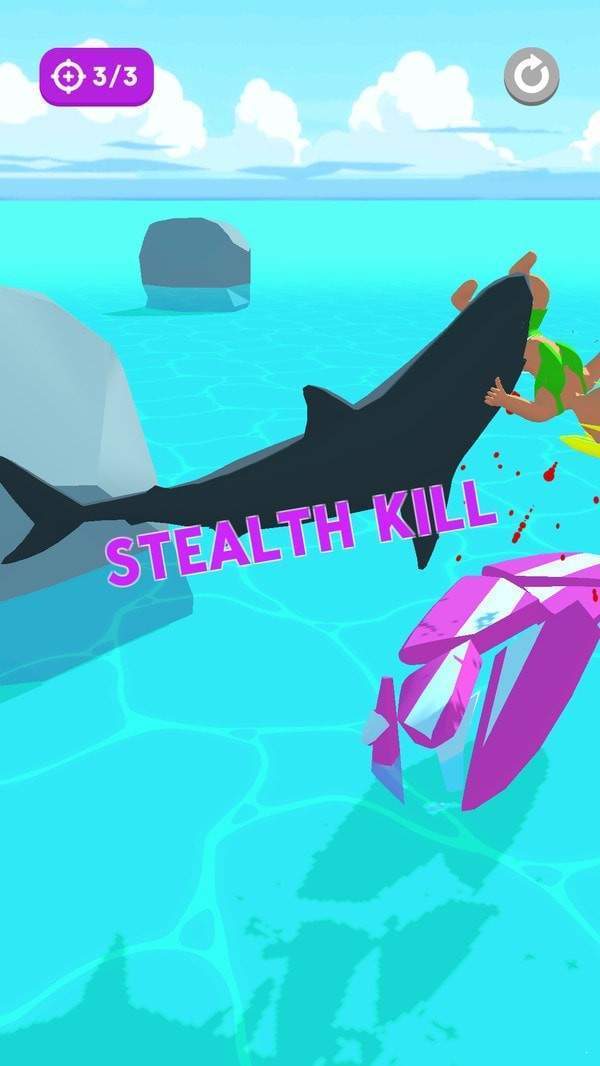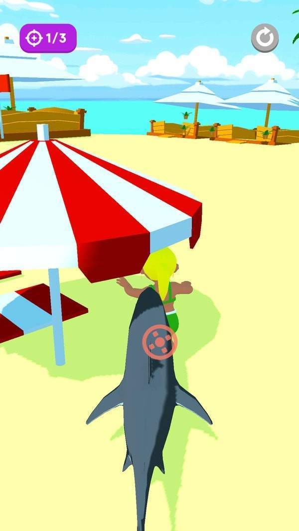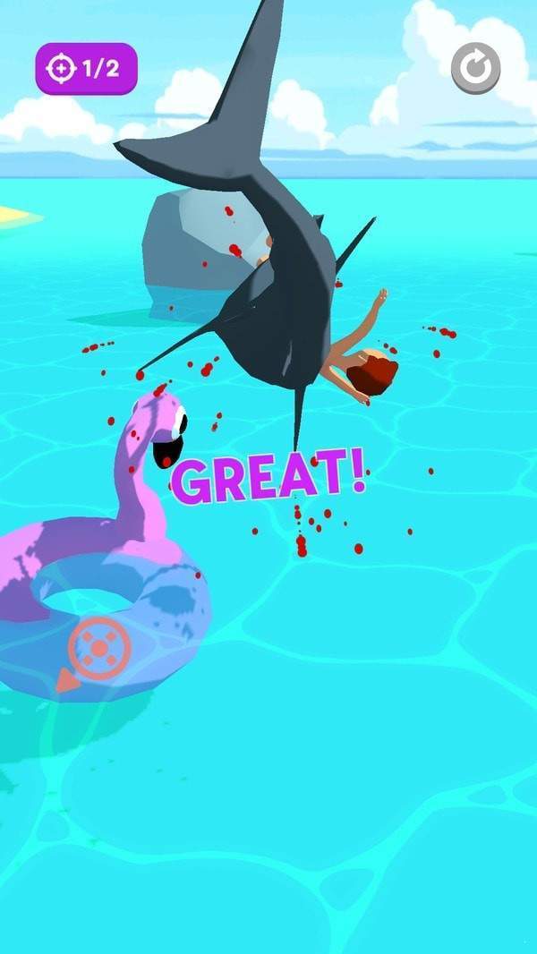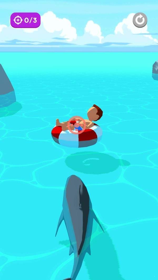 游戏中玩家化身为一条凶残的大鲨鱼。上到海鸟,下到水的各种鱼类。
