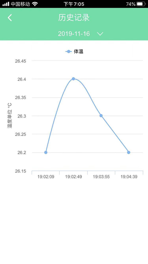 2.每天会结合测量的曲线图进行显示,历史的体温进行对比;