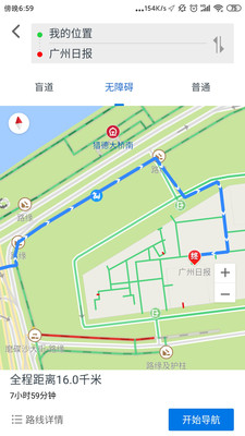 2、可以选择到视障或是轮椅人士不同的地图导航的模式;