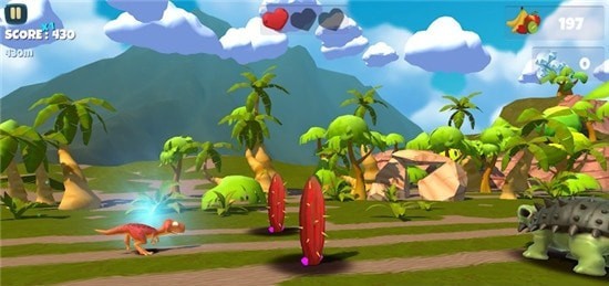 1、卡通般的恐龙跑酷世界,多种趣味性极强的冒险玩法等各种不同的奔跑挑战。