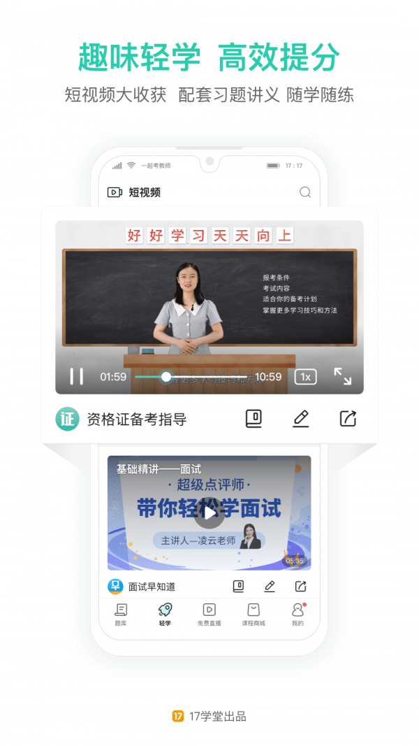 下载一起考教师APP—点击免费直播—选择考试目标—免费看直播课!