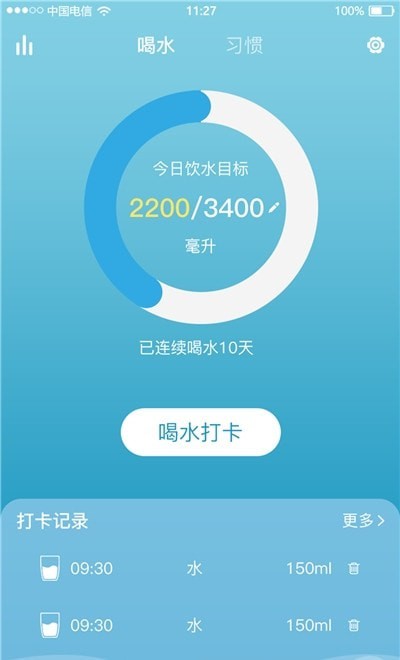设置喝水目标,记录每天喝水,让您养成喝水的习惯,