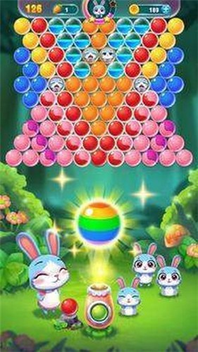 3.兔子会控制气泡发射器发出五颜六色的气泡,玩法也相当经典,把同一颜色的气泡就可以完全消除。