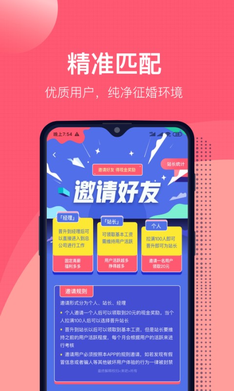 1、为用户提供了邀请按钮,一键即可邀请需要相亲的朋友入驻;