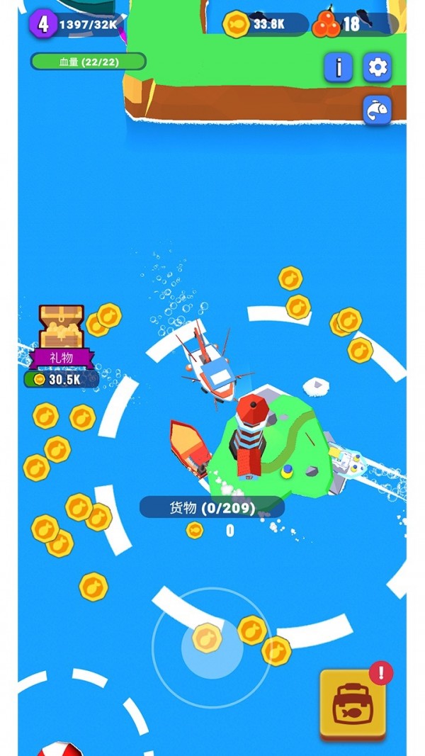 3、通过金币来升级游艇各项等级来提升效率捕捉更多的鱼儿。