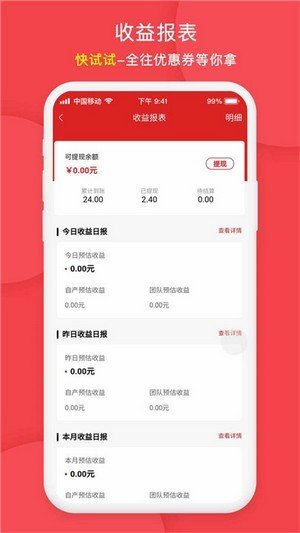 3、支持收益报表汇总,实时查阅账户详情和收益;