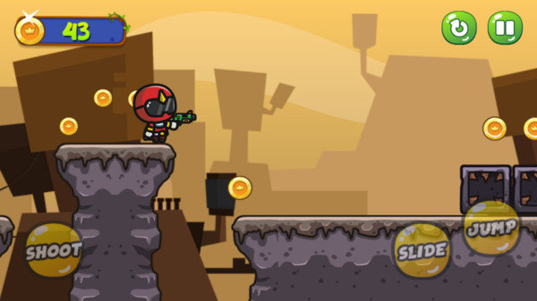 1、只有三个操作按钮,那就是起跳和下滑,根据关卡场景中的陷阱机关来合理操作吧;