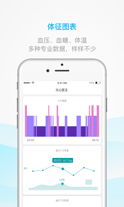 用心呵护每一名患者,乐心医生可以帮助绑定了乐心智能硬件的用户管理保存特有的数据,如心率、体脂、步数、血压、血糖等,为医生的诊断提供更准确的数据,减少医患间的沟通成本,