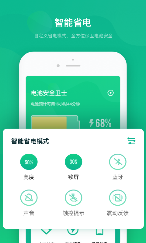 3、一键省电,自定义省电模式,智能一键省电,方便简单,非常方便实用;