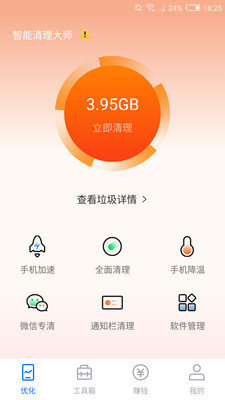 用户可以一键清理手机上的垃圾文件,释放空间;
