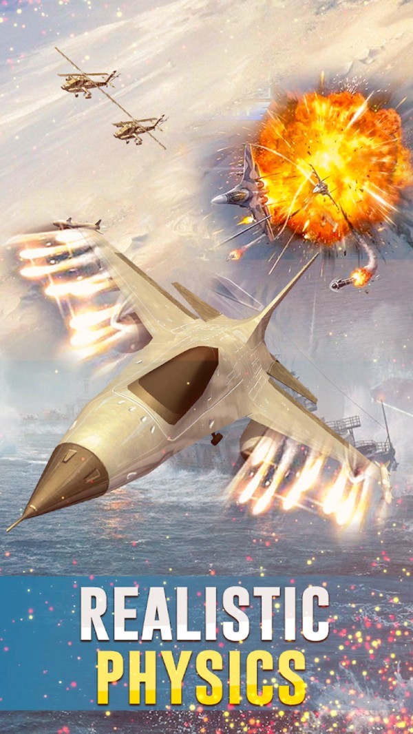 战斗机空战:摧毁敌人的空军基地,由七架战斗机和三架武装直升机守卫;摧毁他们。