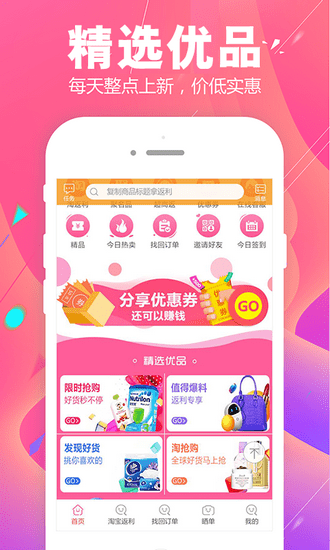 各种品牌每天更新超值爆款,超高返集分宝,只为你而返!