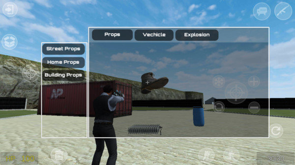 1、射击沙盒可以使用不同的武器战斗,这些武器需要进行战斗去解锁。