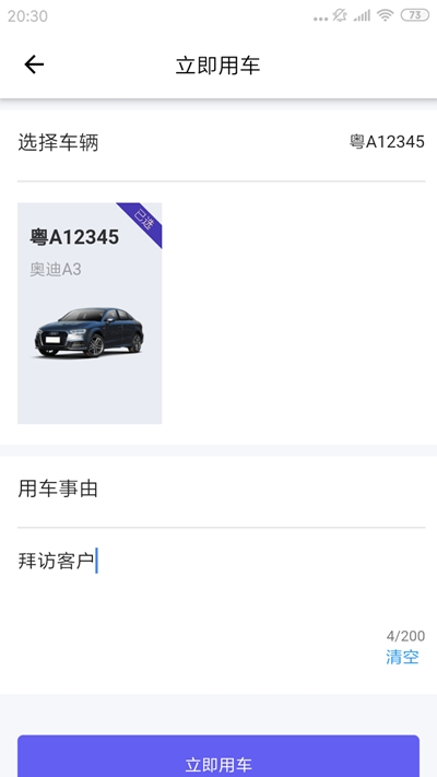 3.对于企业中的公务用车车牌号进行录入,每一条用车流水详细可查。
