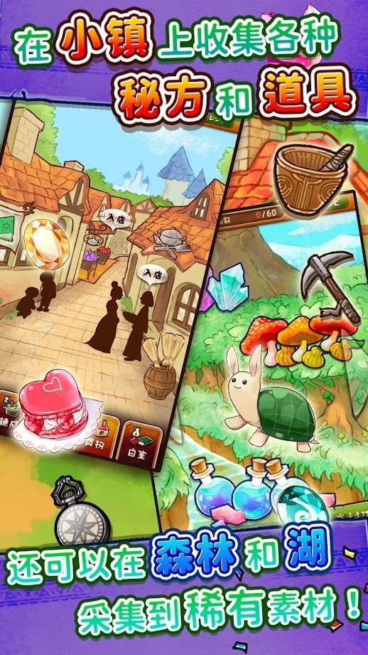 魔女杂货店是一款卡通模拟的趣味店铺经营游戏,在游戏中游戏的画面采用了卡通的风格,让整个游戏的画面感看起来非常的舒适,在游戏中游戏的操作非常的简单,没有复杂的操作手法,玩家将扮演一位可爱的小魔女,你经营着一家专门为小镇上的人提供各种各样道具的杂货店,你的杂货店受欢迎的程度和你制作出来的东西有关,包括魔法药水、属性道具、飞天扫帚等全部都要有你来寻找材料制作,同时解锁各种触发事件寻找更多的配方让你的杂货店成为世界连锁吧!