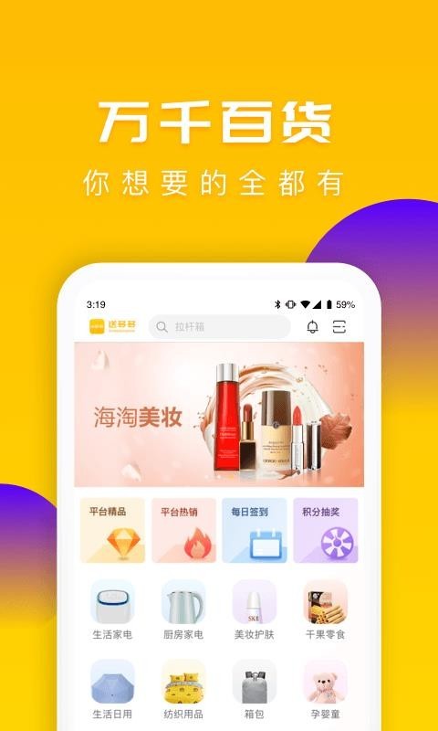送多多app是一款手机购物服务平台。送多多商城app里汇聚了海量优质的商品资源,商品分类一应俱全,送多多app中还有大量的优惠券可以无限领取,每天都有各种抢购活动可以参与。