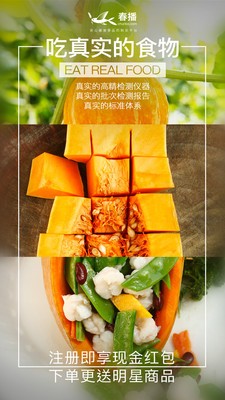 【掌上春播 全面升级您的餐桌安全】春播的使命是为中国家庭提供安心健康的食材和食品,强壮爸爸的肩膀,助力妈妈的手艺,让孩子们在健康快乐中成长。 我们向您承诺,当您收到一份预定的货品时,无论是烹制大餐用的新鲜食材,还是茶余饭后补充能量的休闲小食,它们都拥有“安心,新鲜,健康,美味”4个特质,缤纷美味非常适合您与家人乐趣共享。
