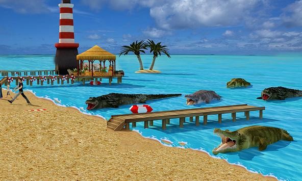 你的目标不是人而是鳄鱼哦,它们霸占了海滩,你要做的就是用枪将它们射杀;