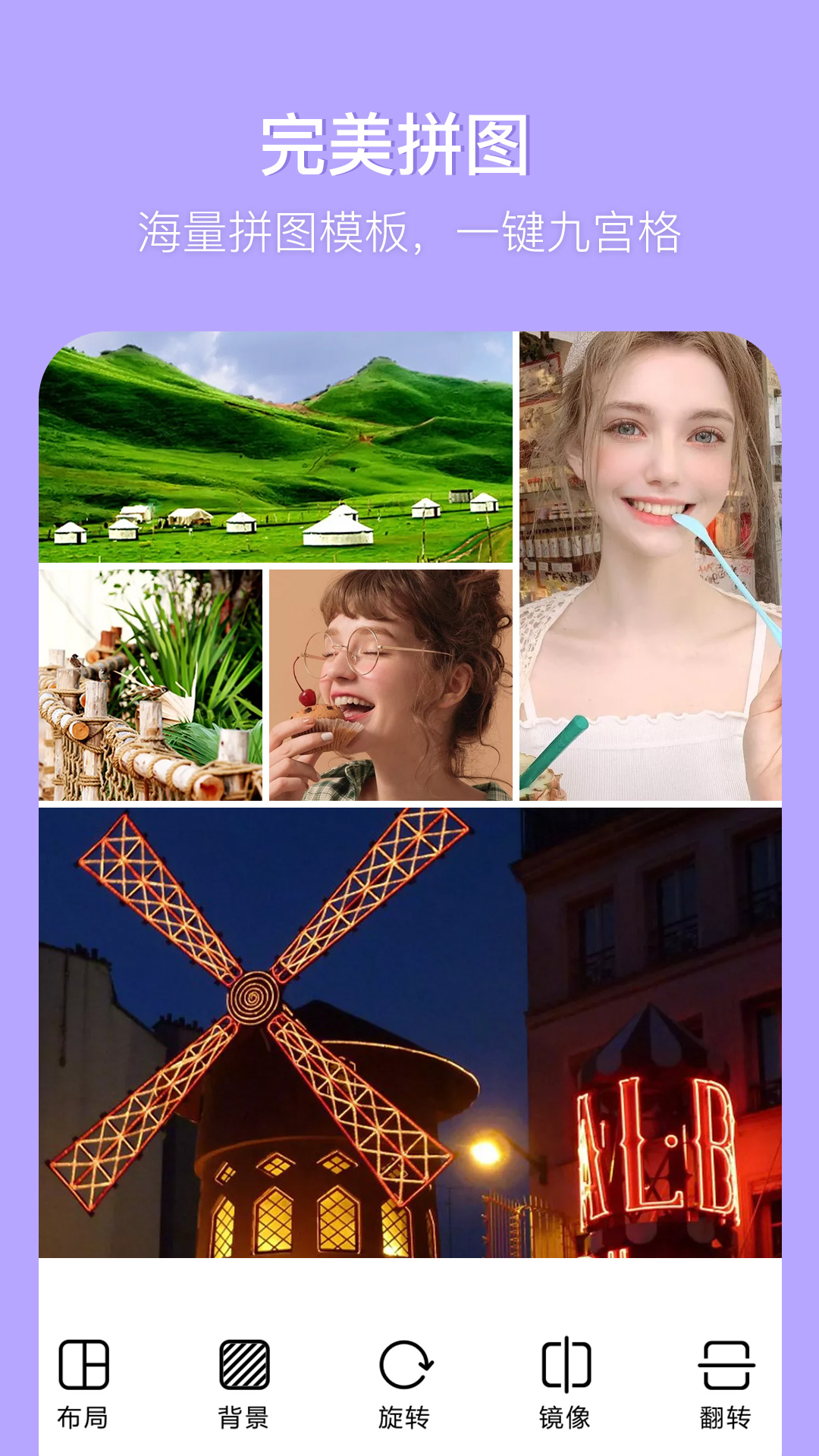 1、照片拼图:海量模版,支持多张照片拼图,模版拼图,随意更改模版布局;