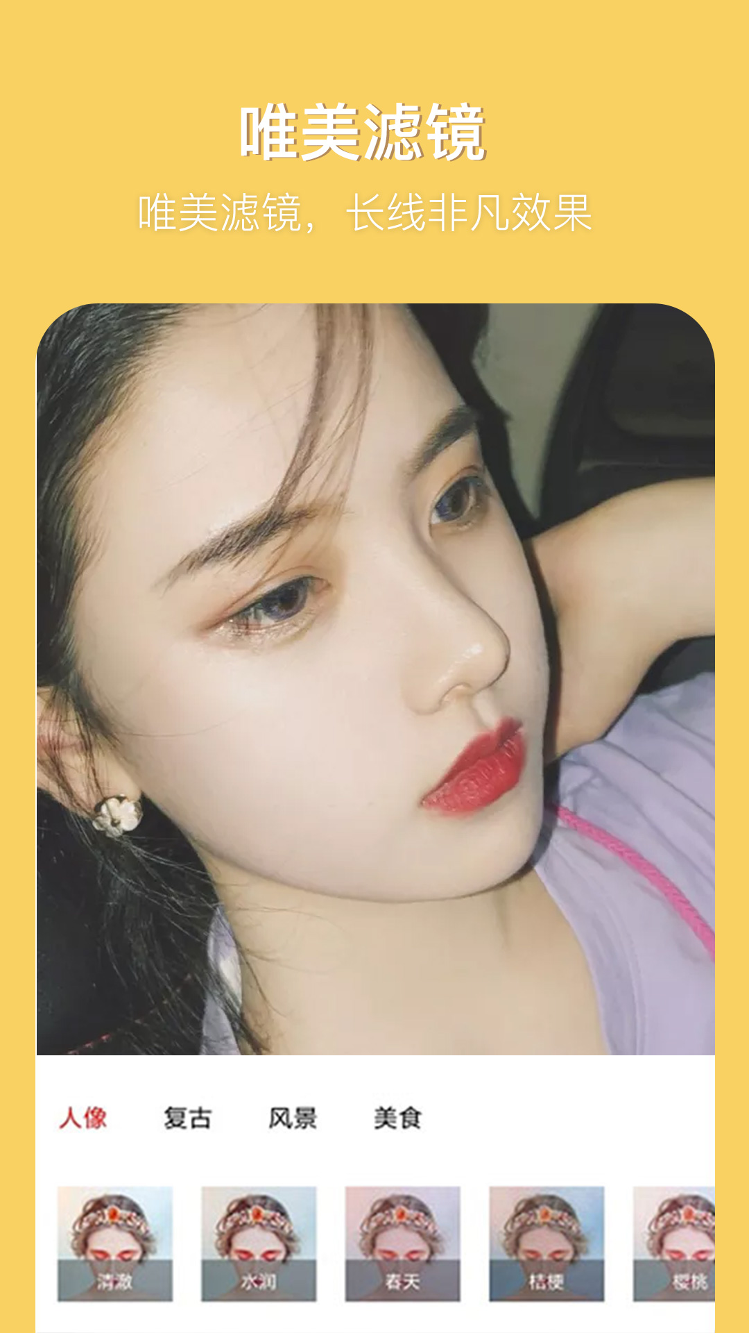 3、滤镜相机:直接拍出带滤镜处理的图片,更有多款“光效”滤镜给图片增加自然的光影效果。
