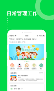 新消息提醒,对于最新更新的公告通知和宝宝出勤情况、宝宝食谱的详情可以及时了解;