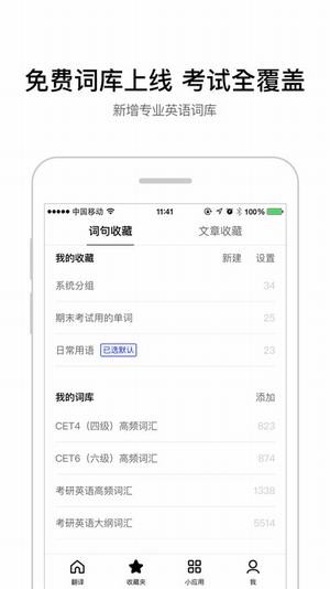 新版百度翻译全面升级“收藏夹”功能,无论是词句还是文章都可以添加到收藏夹里,瞬间化身学生党的“私人图书馆”。新版本不仅新增四、六级专业词汇,还可以根据自己的需求进行分组,能轻松分类必考高频词汇和容易混淆的词汇;强大的单词卡片功能,利用碎片时间,随时随地学习,让你牢背单词不靠翻书,备考时如虎添翼。