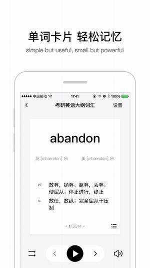 - 单词卡片:简洁实用单词卡片,正乱序播放,多种自定义模式,查词又记词,提升不费时。