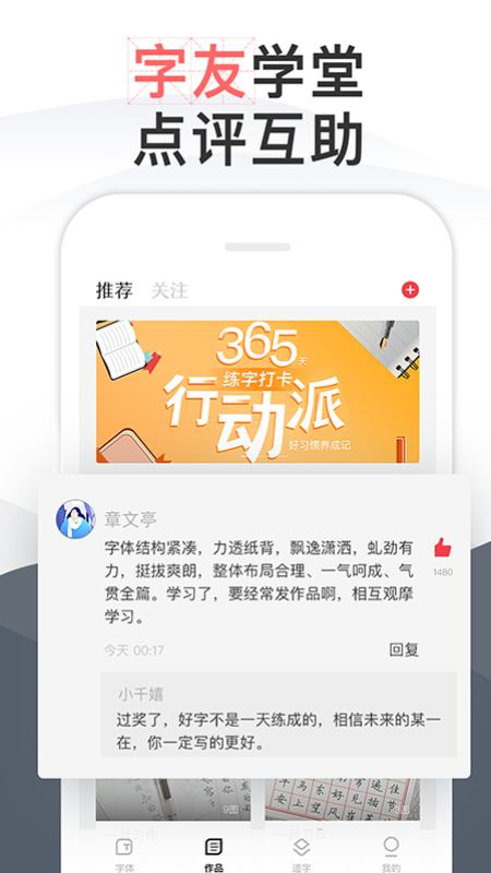 这里拥有许多用户发布的字帖作品,您可以在这里欣赏他人的作品;