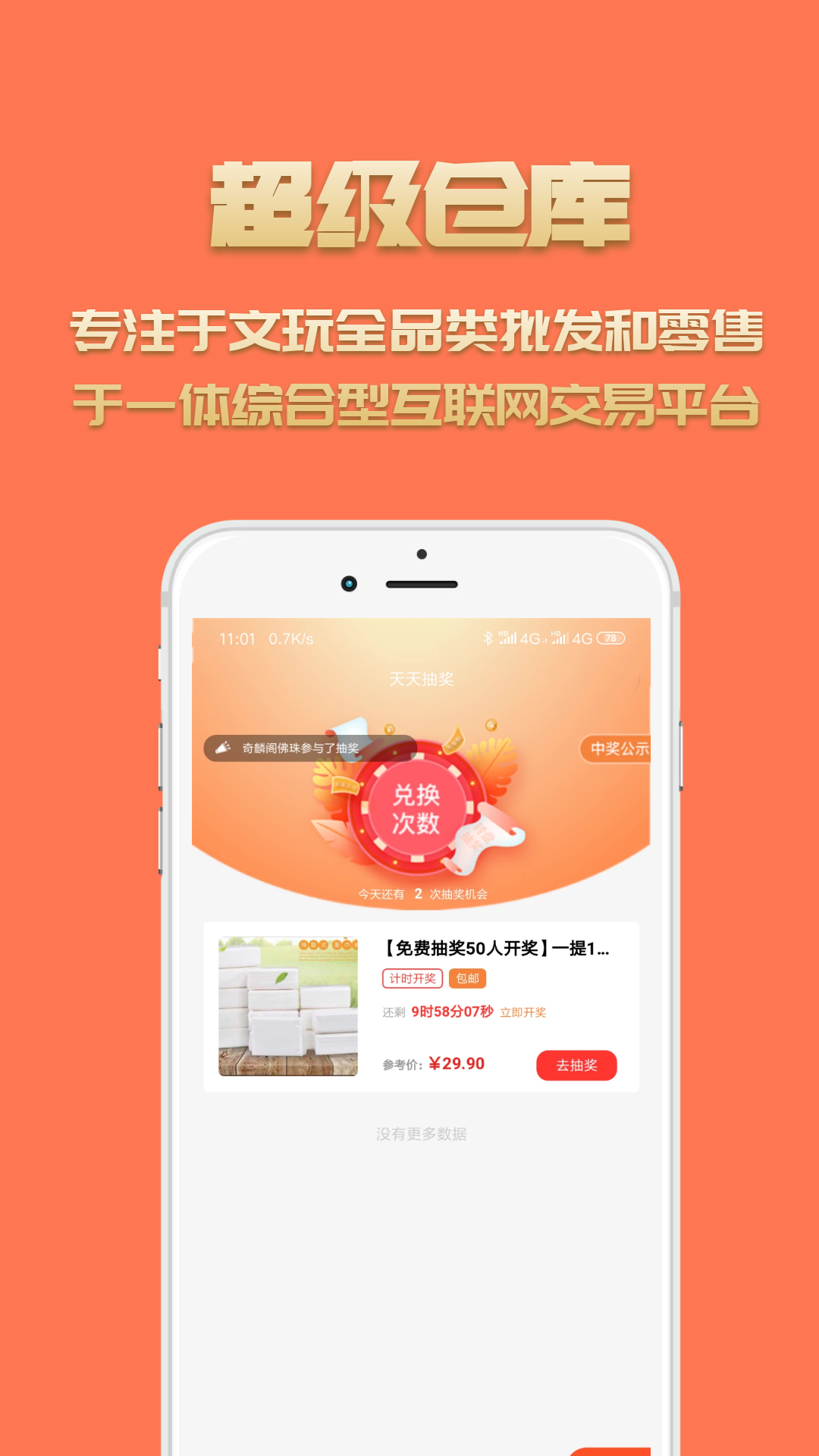 超级仓库app是一款满足您各种不同购物需求的全种类网购平台。超级仓库商城上的商品不仅种类齐全,更难得的是超级仓库app的每件商品都是严格审核,质量都是有保证的!为用户带来专业有确保的采购服务项目,之后就可以根据app网上采购寻找喜欢的文玩收藏品了,高效率采购,提供人性化服务;这儿有着丰富多彩的文玩收藏品资源,各种各样的高品质产品任你在线挑选,都能够依据自身需求轻轻松松挑选你所喜欢的收藏品;来超级仓库服务平台购物超级安心,该服务平台担保交易阶段,给你引入大量文玩销售市场的一手货源,不但是收藏发烧友或是商业服务商家都能够来这儿挑选选购。