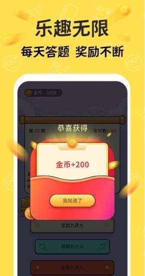 3、玩游戏赚钱,答对题目越多赚取的愈多,金币直接兑换现金没上限。