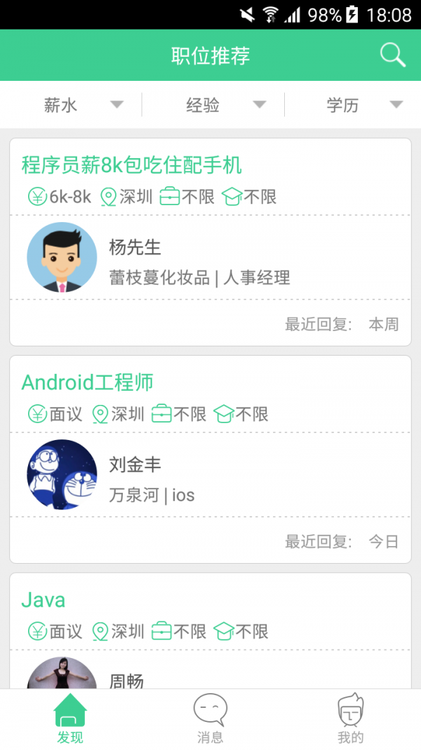江苏直聘是一款由深圳市万泉河科技有限公司打造而来的手机求职招聘应用,江苏直聘app为你发不了丰富的求职招聘信息,用户随时都能在线进行招聘哦,欢迎下载使用!