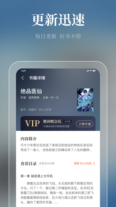 微读吧app是一款专业的小说阅读应用,汇聚了海量网络小说资源,喜欢看小说的人可以在这里自主搜书,男频、女频以及会员专区之中有着丰富的小说可以挑选,个性化阅读需求可以得到满足,喜欢的小说可以加入个人的云书架,每本书的阅读进度能够自动留存,下一次可以自动的定位阅读位置,能够畅读这里的任意一本书。快来麦氪派站下载体验吧。