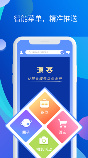 1、渡客猎头app是一家中高端人才跳槽找工作的招聘网站,完美实现了企业,猎头和职业经理人三方互动的职业发展平台;