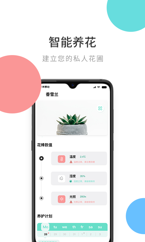 通过花草监测仪设备绑定花草植物,来建立自己的花草档案,光照、温度、湿度等数据通过花棒采集上来,数据信息一目了然,花卉植物养护轻松愉悦。