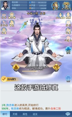 2.文字修真,打坐提升战力,通过练气、锻体、练神等多样操作去整体提升角色实力;