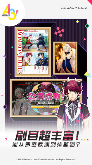 玩家可以通过不断的排练让剧团成员们成长起来,挑战公演!公演时可爱的Q版角色会按照玩家的分配来表演戏剧,公演的自由度也很高,角色和服装都由玩家决定!