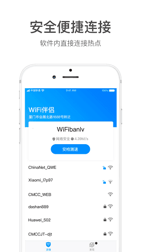 非常安全可靠的连接方式,大家可以看到附近最近最快速的wifi热点。