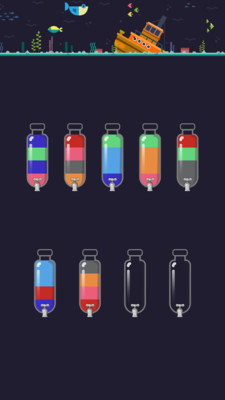 2.简略的操作玩法模式,你能够控制水瓶来倒入不同的液体,让液体改换不同的色彩;