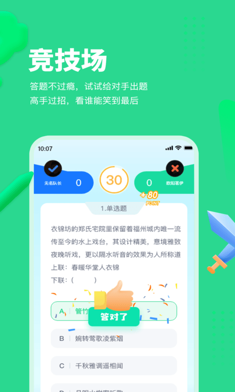 3、提供“竞技场”、“排位赛”等多种兼具互动性与趣味性的学习方式。