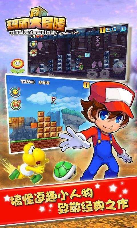 玛丽大冒险是一款超好玩的动作冒险游戏,这款游戏为玩家带来了一次全新的冒险玩法体验,让你在游戏中享受到了不一样的精彩玩法,游戏完美的高度的还原了超级玛丽,让我们重新和水管工一起冒险拯救公主!轻松掌上操作的休闲游戏,触动屏幕向视图中的Q版小人下达命令,不管前路是吉是凶都要勇敢行走下去,一段段波澜不断的故事就在这样的冒险之中展开。