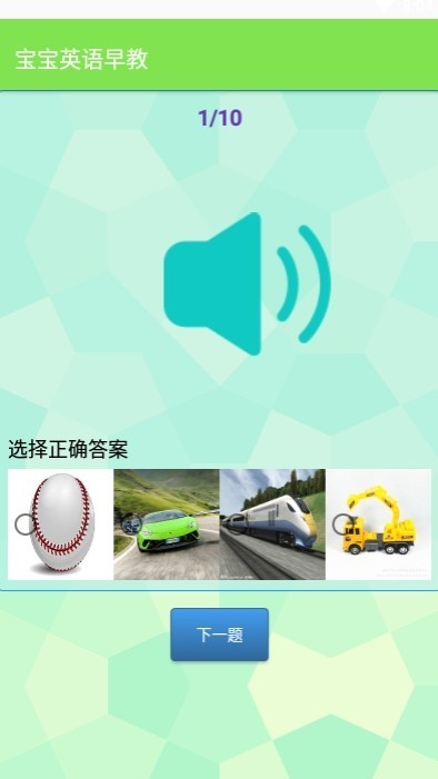宝宝英语早教,针对0-5岁儿童英语早教启蒙,通过有趣生动的卡片吸引宝宝注意力,软件收集生活中常见的单词,基于真人慢速发音,从视觉听觉触觉三方面入手,让宝宝在游戏中轻松认知。 几大常见分类,共大约200个生活中处处可见包括水果,动物,蔬菜,生活用品等等单词,。每天打开应用听一听,没有英语基础的宝妈宝爸也可以教宝宝了。