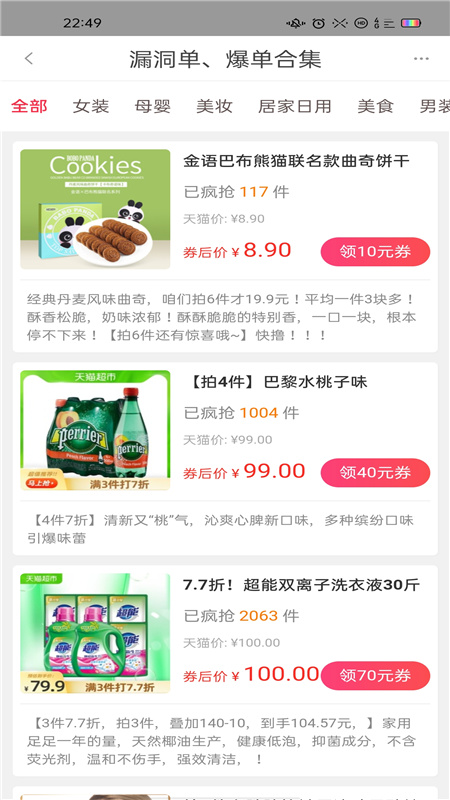 1.全网火爆的商品都能在上面找到,需要什么也可以直接在软件上面搜索;