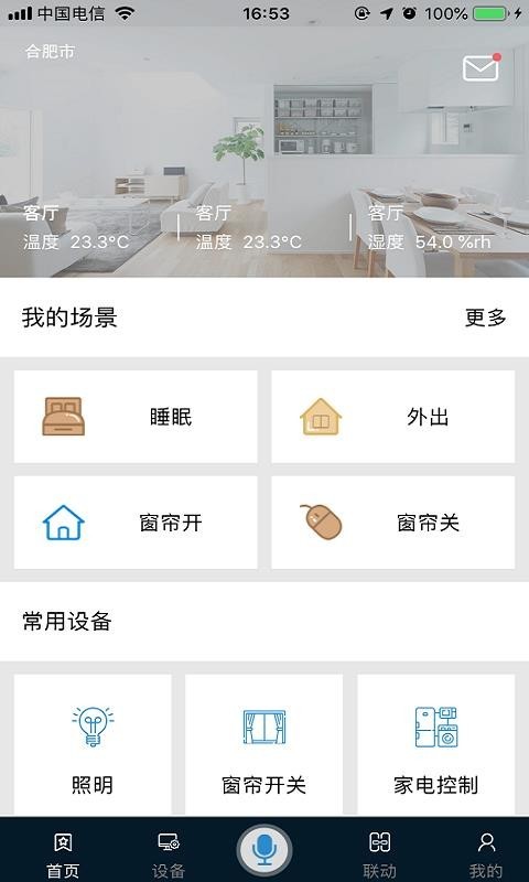 这里支持以语音的方式控制智能设备,只要用户输入语音指令即可让设备自动运行;
